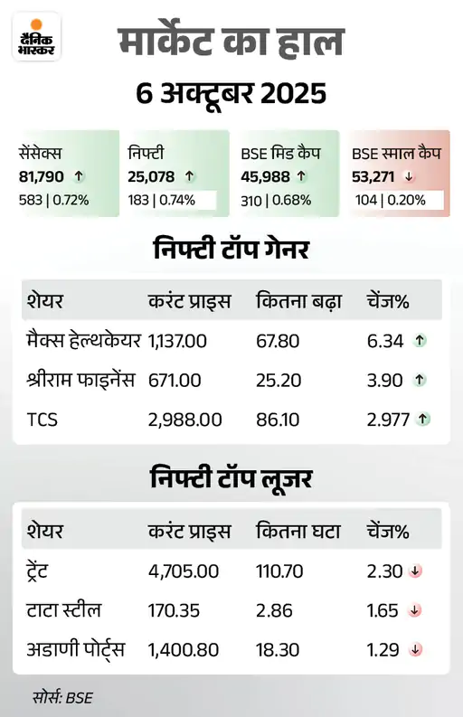 कल की बड़ी खबर सोना-चांदी से जुड़ी रही। सोने-चांदी के दाम 6 अक्टूबर को एक बार फिर ऑलटाइम हाई पर पहुंच गए। इंडिया बुलियन एंड ज्वेलर्स एसोसिएशन (IBJA) के अनुसार 10 ग्राम 24 कैरेट सोना 2,295 रुपए बढ़कर 1,19,249 रुपए पर पहुंच गया। इससे पहले ये 1,16,954 रुपए पर था।